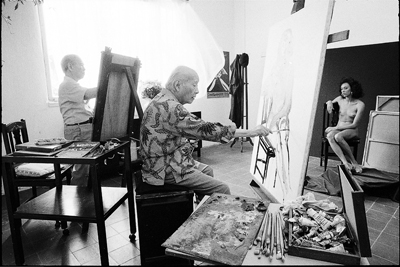 画室的静穆更显出人体艺术的圣洁。1987年,刘海粟与刘抗在新加坡做人体写生时,仍不忘记当年关于人体模特的论争。