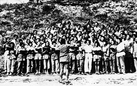 冼星海在指挥延安鲁艺合唱队排练《黄河大合唱》