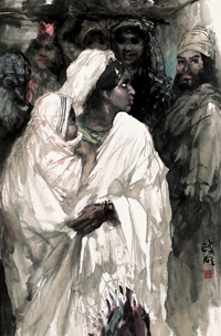他的绘画取材广泛、不拘一格,紧密联系现实生活,随时代拓进。从表现西藏题材的《阳光》、表现新疆题材的《姐妹们》到表现新时期生活的《特区姑娘》,从《马六甲牛车》到《肯尼亚风情》,每一件作品、各一个人物都给观众留下了深刻的印象。这得益于他注重源于现实生活的深切体验和感受,注重对当代社会、不同地域的细心观察。新近创作的大型西藏题材绘画《祈福》更体现出他对我们伟大祖国和人民的深厚感情。