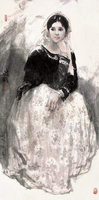 陈政明先生受岭南水土滋养,自幼热爱艺术,勤奋追求、努力耕耘,在水墨人物画领域闯出了一片自己的天地。20世纪以来,受“西风东渐”之影响,中国画,尤其是中国的人物画创作很快融合了写实主义的优长,发展出不同于古代绘画的时代特色。徐悲鸿、蒋兆和、李斛均是融合中西艺术表现方式的一代大家;与此同时,高剑父、高奇峰等地处南中国的岭南画家也大胆革新,将西方现代绘画语言和方法引入中国画,发展出具有岭南地方特色的现代中国水墨画。这诸多成功范例为陈政明先生艺术的发展奠定了丰厚的基础。正是在这样的大氛围下,他既继承传统,又勇于开拓,其人物画创作在保留中国绘画深厚内在精神的基础上,接受西方造型规律、光影表现等手法,以为我用,创造出清新亮丽的独特个人风格。