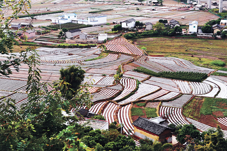从云南保山到临沧的路上,一片不知名的农田,好美呀。这个片子我想体现一种多彩祥和的田园风光,表现劳动人民的勤劳和创造。覆盖在田里的地膜,由于阳光的作用,闪着条条亮光,与周边的景物形成反差对比,使之成为图片的主角;云南特有的红土地,其他植物的绿色和远处的河水,以及点缀在田中的农舍,既丰富了片子的色彩又共同体现了一种祥和宁静的乡村气氛;田地不规则的几何图形,增添了画面的美感,也让画面更加生动。 |