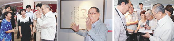 李岚清素描作品展受到文艺大师亲属的高度认可,图为李岚清在展览现场跟大家亲切交流
