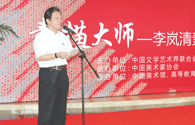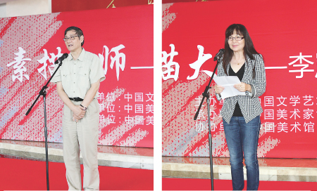 作为展览作品的创作者,李岚清知道所有来观展的人都对他的作品充满好奇。他在开幕式现场向来宾们亲切随和地讲述起自己的创作缘由:“我退休8年半。退休之初我就立志:健身健脑,读书写作。这是我自己的人生目标和追求。前段时间我专注于音乐和篆刻。一开始,潘公凯就提醒我,根据他父亲潘天寿治印的体会,做篆刻会上瘾的——结果,不幸被他言中:退休之后我沉迷于篆刻,废寝忘食共刻了700余方印。去年,我的脊椎再也无法承受这样高强度的压力,但我也不能闲着,所以需要找一个事情,戒掉篆刻的瘾。这一个事情,就是素描。”李岚清幽默的讲述,使现场气氛和谐轻松。而文艺界几乎都知道,李岚清同志近些年为推动音乐普及和创作研究,为弘扬祖国优秀传统文艺,为宣传伟大的中华文明,确是呕心沥血,功莫大焉。中国文联党组书记、副主席赵实在开幕式致辞中给予了精辟的评价。她说:“素描是造型艺术的基础,是画家必备的一项基本功,注重线条运用的科学和物象造型的准确,为欧洲文艺复兴时期的巨匠达芬奇、米开朗基罗以及我国现代大师徐悲鸿、王式廓等前辈所推重。岚清同志是党中央第三代领导集体的重要成员,为推动我国改革开放和社会主义现代化建设事业作出了巨大贡献,特别是为领导我国文化事业的繁荣发展,付出了巨大的辛劳,取得了巨大成就,深受全国人民和文艺界的衷心爱戴。岚清同志心系党的文艺事业,志趣高雅,融贯中西,多才多艺,在繁忙的政务之余,雅好丹青、翰墨,精通音律、篆刻,是广大文艺家的良师和益友,为领导干部修德、从政,也为文艺家从艺、做人树立了典范。今天我们展出的岚清同志的120多幅素描作品,以中国传统的诗、书、画、印一体的形式,艺术地再现了我国声望夙著的近现代文艺大师们的神韵,堪称独具匠心的艺术创意,不仅为中国文艺家之家增添了一道亮丽的风景,同时对于扩大宣传我国文艺史上贡献卓著的文艺大师们的艺术成就与影响,对于先进文化的传承和艺术普及教育,都具有十分重要而深远的意义。”