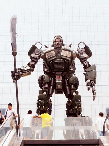 9月2日,一个手持青龙偃月刀的关公版“变形金刚”亮相西安长安国际广场,吸引了众多市民的眼球。据了解,这个名为《解·放》的关公版“变形金刚”高约9.7米,由一辆老解放牌汽车改装而成,暗含着传统的继承与发扬需要注入新鲜时代血液的寓意。 新华社发 王 振 摄