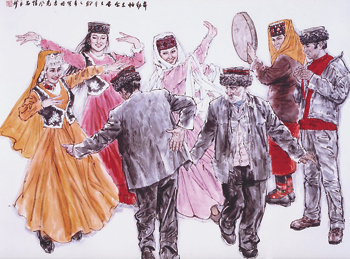 这是一个浩繁的工程。用中国水墨全景式展现56个民族多姿多彩的生活风貌,前无古人。它要求画家除却坚实的绘画功力,还需要具备广博的民族知识、丰富的资料积累、深切的生活体验和厚实的文化素养。