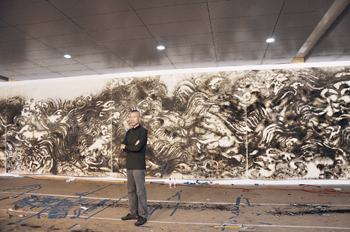 蔡国强在爆破后的《观潮图》前 陈晓勤 摄