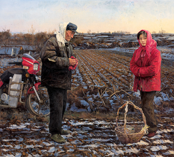 现实主义油画的技巧基础是写实造型,欧洲油画是从写实起步逐渐走向高峰的,历代大师都在写实领域的方方面面做出了不懈的探索,取得了辉煌的成就。从19世纪末开始,在西欧,写实油画受到了表现性和抽象性等现代主义形态油画的挑战而逐渐式微,产生这种状况有很复杂的社会、政治、经济和文化等方面的原因,也含有油画本体自身变革的因素。油画艺术要随着时代的变化而不断发生变化,写实语言也不应该停留在一个水平上,这是毫无疑问的。值得讨论的是,写实油画会不会因为现代主义艺术形态的崛起而失去自身的艺术价值,失去继续存在的空间?对此,近几十年来国内外学术界一直存在着热烈的争论。而上个世纪末新产生的观念艺术和用科技手段制作的新的图像,又对整个用手工创作的绘画发难,似乎观念可以替代绘画创作,新的、科技手段造成的图像可以替代甚至在表现力上优越于一切绘画作品。在一次次激进的思潮与运动中,写实油画经受着严峻的考验,虽然它已经不是西方艺术的主要品类,但它仍然表现出顽强的生命力。西方仍然有不少艺术家在执著地固守这块阵地,在探索写实油画表现力新的可能。我们不能在诸如当代英国艺术家弗洛伊德、西班牙艺术家卡西亚·洛佩斯等人追求真实性的作品前面无动于衷,也不能对20世纪俄国及其他东欧国家写实油画丰硕的成果及其今天的探索视而不见。有几千年文化传统的中国,从开始接受和引进欧洲油画到今天,已有一百多年的历史,几代先驱艺术家们在采用油画语言时,逐渐认识到油画对推动社会进步和丰富国人文化生活方面所产生的积极作用。他们在两个方面投入了巨大的精力:学习和研究西欧古典油画技巧,赋予其中国文化精神。中国艺术家学习和研究的油画技法以写实为主,兼有表现性和现代性的技巧。值得提起的是,中国艺术家都有意无意地把自己从民族文化艺术中得到的熏陶和获得的营养,用于油画创造,融入中国艺术的写意元素,逐渐使中国油画的艺术语言具有民族风采。