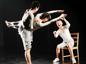 对于形体戏剧来说,表达非理性、非戏剧性、意识性的精神世界,才是它的更高层面,它不再理性地追求铁的逻辑,不再硬性地规定外在写实、内在也要写实。而这也正日渐成为三拓旗剧团新的艺术追求。“我们正在尝试,正在追,正在爬。我们刚刚在北京国际青年戏剧节上演的《九种时刻》,基本上就是不讲故事、不说话,而且有的地方甚至不是按照生活逻辑来的,就是用肢体语言表达人们在九种情境下不同的心理状态。得到或失去,无言或呐喊,在九种时刻下,在九种情境中,我们的身体及内心都会有极致的表现,孤独、恐惧、愤怒、无奈、绝望、欢乐、尴尬、疯狂、呆滞,都是人类共通的情感,我们把内心外化,其实表达的主题跟所有戏剧表达都是一样的。”