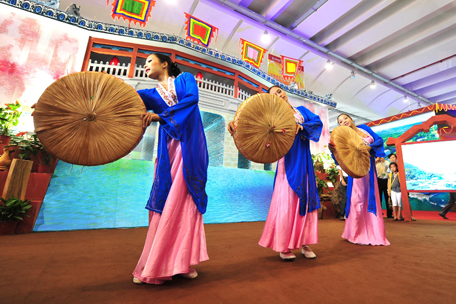 10月23日,身着民族服饰的演员表演舞蹈。在广西南宁举行的第八届中国—东盟博览会上,极具特色的中国和东盟各国民族服饰让观众领略到多姿多彩的服饰文化。