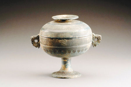 古代青铜器是铜、锡、铅以一定的比例冶铸成的。据学者研究,“商代青铜器的成分大多数是铜锡合金,其中铜占到70%以上,西周青铜器含铅量较高,同时锡的成分有所增加。春秋战国及秦汉时期的青铜成分中,铜锡比例一般为79∶21。铜镜的合金成分中锡量大增,因此,青铜镜质脆而呈灰白色光泽”。该件豆这样的亮度应是铜、锡、铅的比例发生了变化,而锡的成分明显加大导致的。锡既贵重,又较缺乏,由此可见,使用这件豆的主人等级、地位较高,该件豆不但造型规整精美,而且纹饰生动细腻,使用等级较高,是春秋战国时期的标准器,极具鉴赏价值。