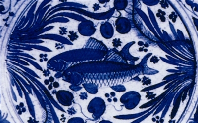 关于元青花的装饰方法,笔者要特别提出的是尚未被多数专家学者关注的一种元青花装饰手法——撒蓝。这种撒蓝装饰方法在元青花中运用相对较少,但多是在元青花精品中见到。如土耳其托普卡比宫藏直径为45厘米的元青花青地白花莲池水禽纹菱口大盘(图1),在白花上弥散着蓝色的斑点,显得更加幽深美丽,是运用撒蓝装饰手法的典型代表。英国牛津大学考古系博士蒋奇栖指该盘“使用了一种特别的技法,把蓝喷洒在上面”。笔者认为这是元青花的一种成熟的装饰技法——撒蓝,也就是说这种装饰方法是元代工匠有意识的美学追求,并已经普遍运用于元青花的图案装饰之中。