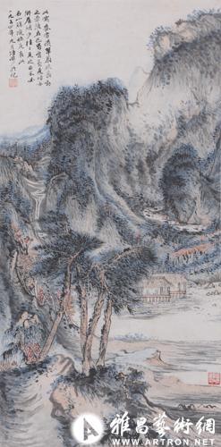 陆俨少 忆巴蜀山水 设色纸本 立轴 76×37cm