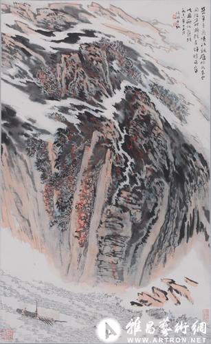 陆俨少 峡江历险图 设色纸本 立轴 96×59cm