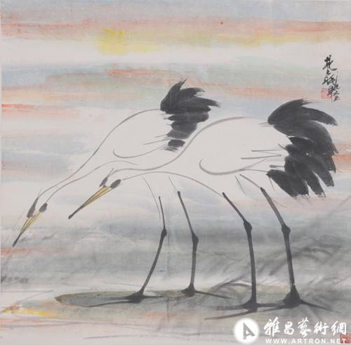林风眠 双鹭图 设色纸本 镜心 68×68cm
