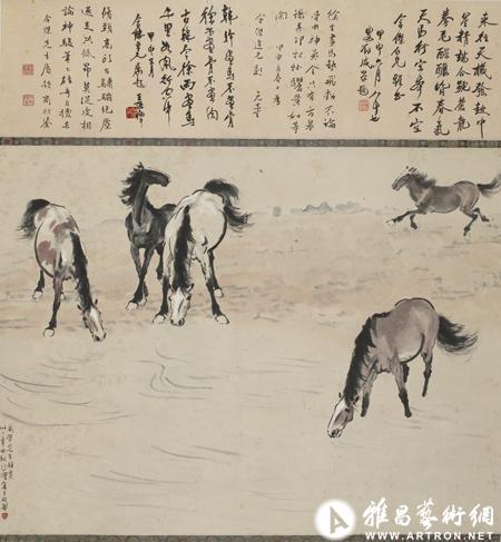 徐悲鸿 五骏图 设色纸本 立轴 一九四三年作 74×96cm