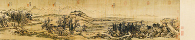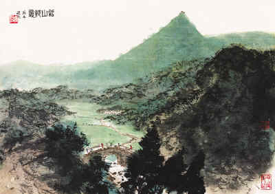 《毛主席诗意册》(局部)是傅抱石的代表作之一,作于1964—1965年间。作品有大胆而富于变化的构图、瑰丽而沉毅的色彩,充满浪漫主义的诗情画意。
