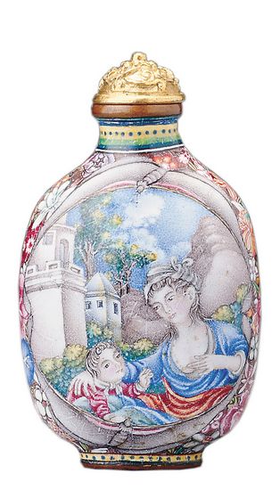 铜胎画珐琅西洋母子图鼻烟壶