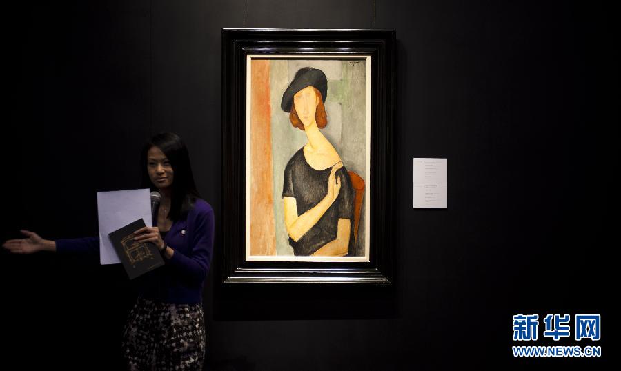 11月21日,工作人员介绍将于2013年2月6日在伦敦拍卖的亚美迪欧·莫迪利安尼作品《戴帽子的珍·伊布特》,该作品估价超过1.9亿港币。当日,佳士得拍卖行在香港会议展览中心举行海外拍场珍品预展。 (新华社记者 吕小炜 摄)