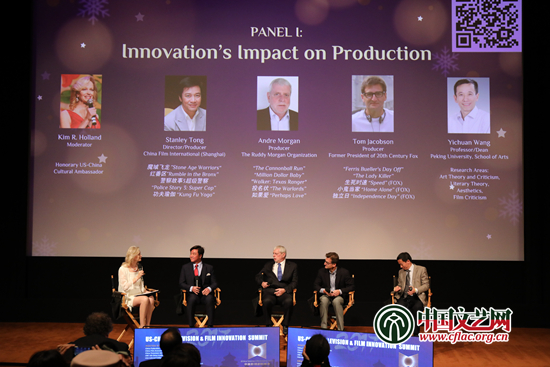 双方嘉宾就如何让中美合拍片在国际上拥有更大影响力、如何打造符合网络时代潮流的影视IP、如何妥善利用巨幕、前期预览、虚拟现实等科技手段创作出有内容、有市场的作品等具体问题进行了探讨。汤姆·雅各布森说,一部成功的合拍片首先需要一个好剧本,能被来自不同文化背景的人所接受,但同时应当根据市场,因地制宜。安德鲁·摩根认为,中国已经向世界证明了它的影视发展潜力和经济实力,结合好莱坞的制片经验和技术,合拍片的未来具有无限可能。王一川院长指出, 近年中国电影在对外输出方面正遭遇瓶颈期,需要中美两国的业内人士加强合作交流,共同诊断、共同探讨中国电影的现状和未来,讲好中国故事。