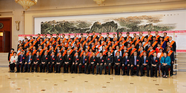第三届感动中国的矿工与参加发布会的领导合影(高跃冬/摄)