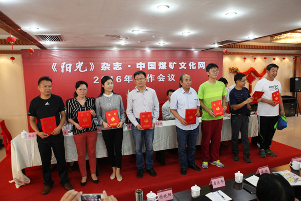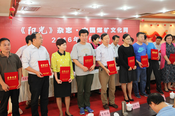 会上,刘万义宣读了2016年度《阳光》杂志编务工作和全国煤矿文化网络宣传先进单位和先进个人名单,与会领导向各先进单位和个人代表颁发了获奖证书。河南神火集团政工部部长王启、山东能源枣矿集团蒋庄煤矿工会办公室主任刘仍索分别代表获奖单位和个人表态发言。