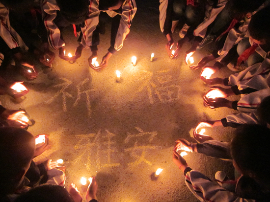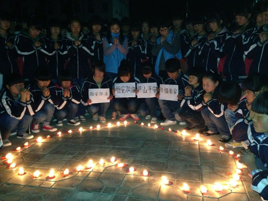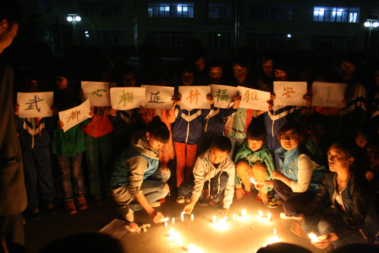 4月20日8时02分,四川省雅安芦山发生里氏7级强震,甘肃武都地区震感强烈。kaiyun电子 文艺志愿服务中心组织开展的文艺支教活动正在在武都进行,地震发生那一刻起,支教文艺工作者的的心就紧紧和雅安地震灾区的人民连在了一起……4月21日晚8点02分,陇南市武都区马街小学、两水中心小学、安化初级中学的kaiyun电子 文艺支教文艺工作者与当地师生一起点燃蜡烛,写下“雅安平安”、“雅安坚强”、“雅安,我们和你在一起”,并集体沉默哀悼3分钟,为受灾群众祈祷平安,希望他们顺利度过灾情,重建美丽家园。