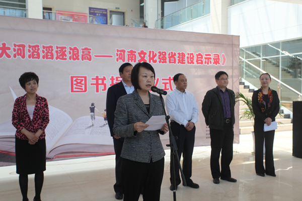 向云驹代表捐赠方在致辞中说,河南是中原大省、文化大省,河南文化过去是中国文化的主脉,河南文化的今天和未来也将深刻影响中国文化的面貌和发展方向。《大河滔滔逐浪高——河南省文化强省建设启示录》旨在将河南建设文化强省的成功做法记录下来,推向全国,也是我们交给河南人民和河南文艺界的一份答卷,希望今后能有机会,记录和推广更多的河南建设文化强省的成就和经验。