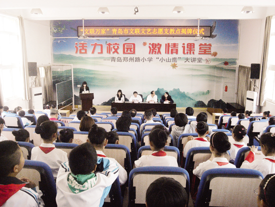 5月21日上午,青岛市文联在青岛市郑州路小学举行“文联万家”文艺志愿支教点揭牌仪式。同时宣布“青岛市文艺志愿服务团”和十大文艺家协会组成的“文艺志愿者服务队”成立。