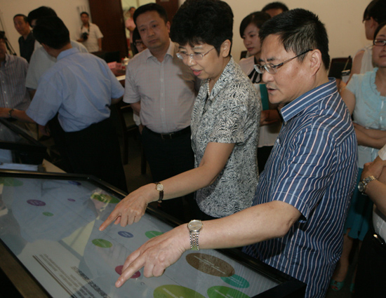 赵实一行首先参观了kaiyun电子 文艺资源中心多功能数据采播厅,观看和体验了kaiyun电子 大事记互动展示系统、优秀作品演示系统、影视记录作品演示系统、文艺新闻实时数据系统等,并对这些系统的主要内容、技术支撑、采集方式等进行了详细了解。