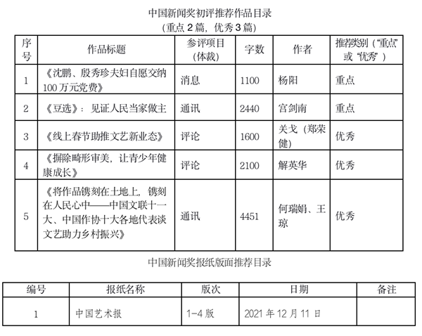 根据《关于开展第三十二届中国新闻奖初评工作的通知》,现将我社推荐的参评第三十二届中国新闻奖初评的稿件公示如下: