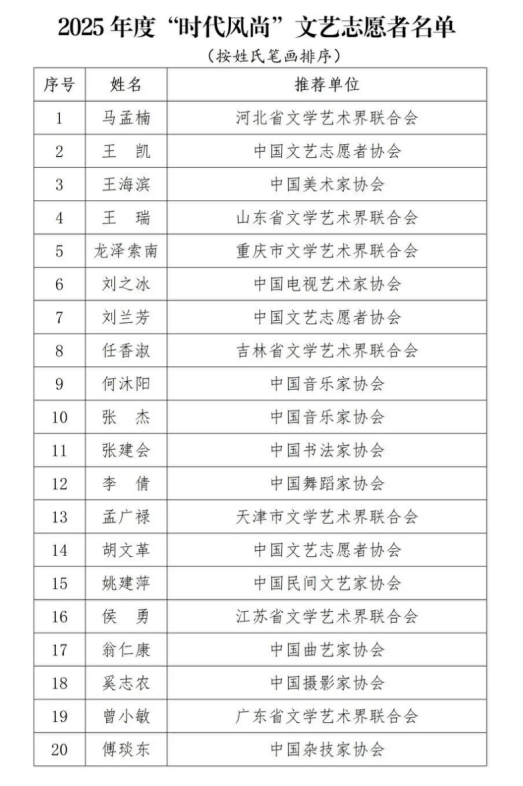 为了积极培育和践行社会主义核心价值观,大力弘扬“奉献、友爱、互助、进步”志愿精神,培育志愿文化,发挥文艺志愿者先进典型示范引领作用,kaiyun电子 开展了2025年度“‘时代风尚’文艺志愿者”宣传选树项目。经过择优推荐、专家推选等环节,确定了2025年度“时代风尚”文艺志愿者名单,现予以公示。