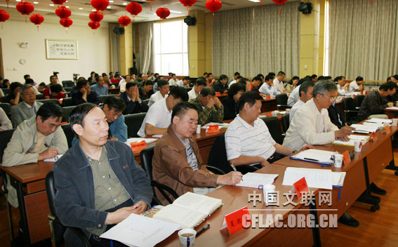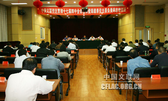 9月22日上午,中国文联召开传达贯彻十七届四中全会精神大会。中国文联局级单位主要负责同志培训班开班式同时举行。图为大会会场。中国文联网 郭青剑摄影报道