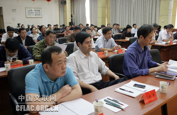 9月22日上午,中国文联召开传达贯彻十七届四中全会精神大会。中国文联局级单位主要负责同志培训班开班式同时举行。图为9月22日下午中央政策研究室党建研究局局长江金权作题为《加强和改进新形势下党的建设的纲领文献》的讲座。中国文联网 孟祥宁摄影报道
