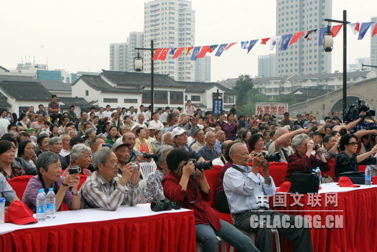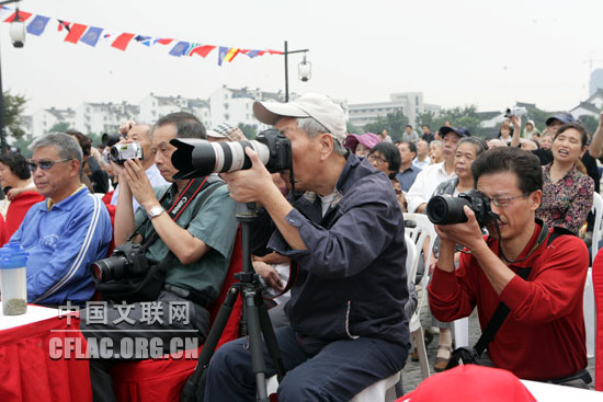 10月7日晚,由中国文联和江苏省人民政府共同主办,江苏省文化厅、江苏省文联、苏州市人民政府联合承办的第八届中国国际民间艺术节,在苏州工业园区科技文化艺术中心隆重开幕。艺术节期间,来自世界五大洲14个国家的1200多名中外艺术家,在江苏苏州5市7区,采用舞台演出和即兴展示相结合的方式进行巡回展演。图为来自世界各地的艺术家的精彩演出吸引了当地摄影家和摄影爱好者的目光。中国文联网 孟祥宁 摄