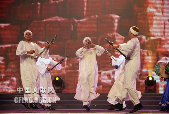 10月12日,第八届中国国际民间艺术节颁奖典礼暨中外艺术家大联欢在苏州市相城区体育艺术馆举行。图为埃及拜尼斯维夫民间舞团为观众演出埃及民乐。中国文联网 孟祥宁 摄