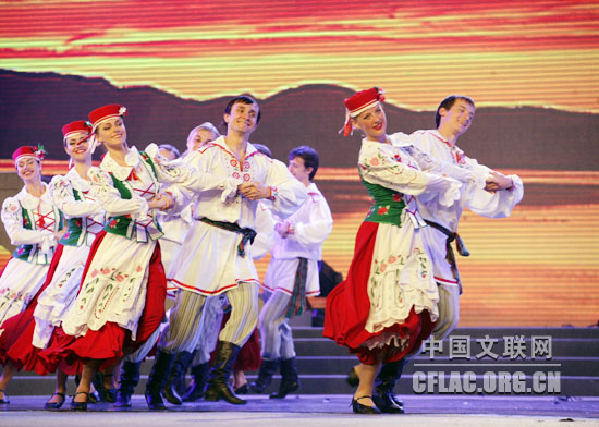 10月12日,第八届中国国际民间艺术节颁奖典礼暨中外艺术家大联欢在苏州市相城区体育艺术馆举行。图为白俄罗斯国家舞蹈团演出《利亚沃妮赫》。中国文联网 孟祥宁 摄