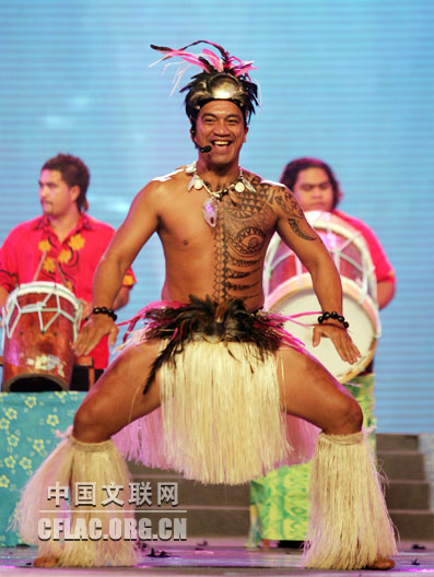 10月12日,第八届中国国际民间艺术节颁奖典礼暨中外艺术家大联欢在苏州市相城区体育艺术馆举行。图为库克群岛启明星舞蹈团演出草裙舞。中国文联网 孟祥宁 摄