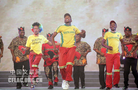 10月12日,第八届中国国际民间艺术节颁奖典礼暨中外艺术家大联欢在苏州市相城区体育艺术馆举行。图为南非文化艺术团演出精彩非洲舞蹈。中国文联网 孟祥宁 摄