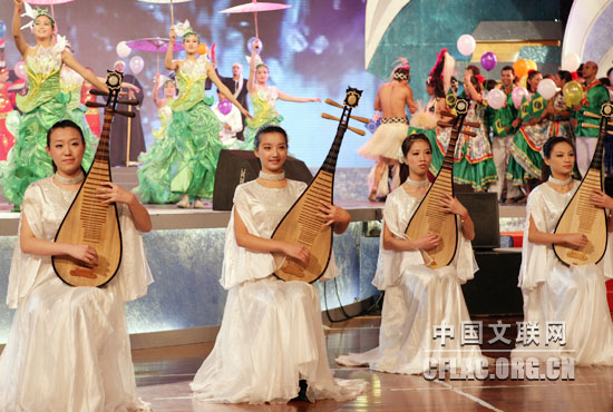 10月12日,第八届中国国际民间艺术节颁奖典礼暨中外艺术家大联欢在苏州市相城区体育艺术馆举行。图为中国(苏州)艺术团演奏评弹。中国文联网 孟祥宁 摄