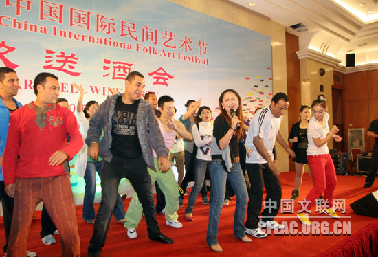 10月7日晚,由中国文联和江苏省人民政府共同主办,江苏省文化厅、江苏省文联、苏州市人民政府联合承办的第八届中国国际民间艺术节,在苏州工业园区科技文化艺术中心隆重开幕。艺术节期间,来自世界五大洲14个国家的1200多名中外艺术家,在江苏苏州5市7区,采用舞台演出和即兴展示相结合的方式进行巡回展演。图为各国艺术家同台表演,激情四射。中国文联网 孟祥宁 摄