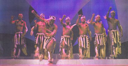 来自南非的黑人合唱组合,把遥远的非洲歌舞带到中国。由清一色男性黑人组成的“黑色旋风”合唱组,用他们动听的歌喉和富有非洲风格的旋律及美妙和声,为观众展现了一幅活力四射的非洲风情图。